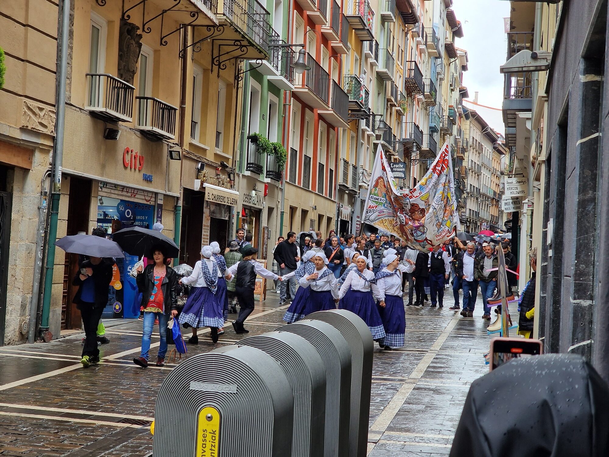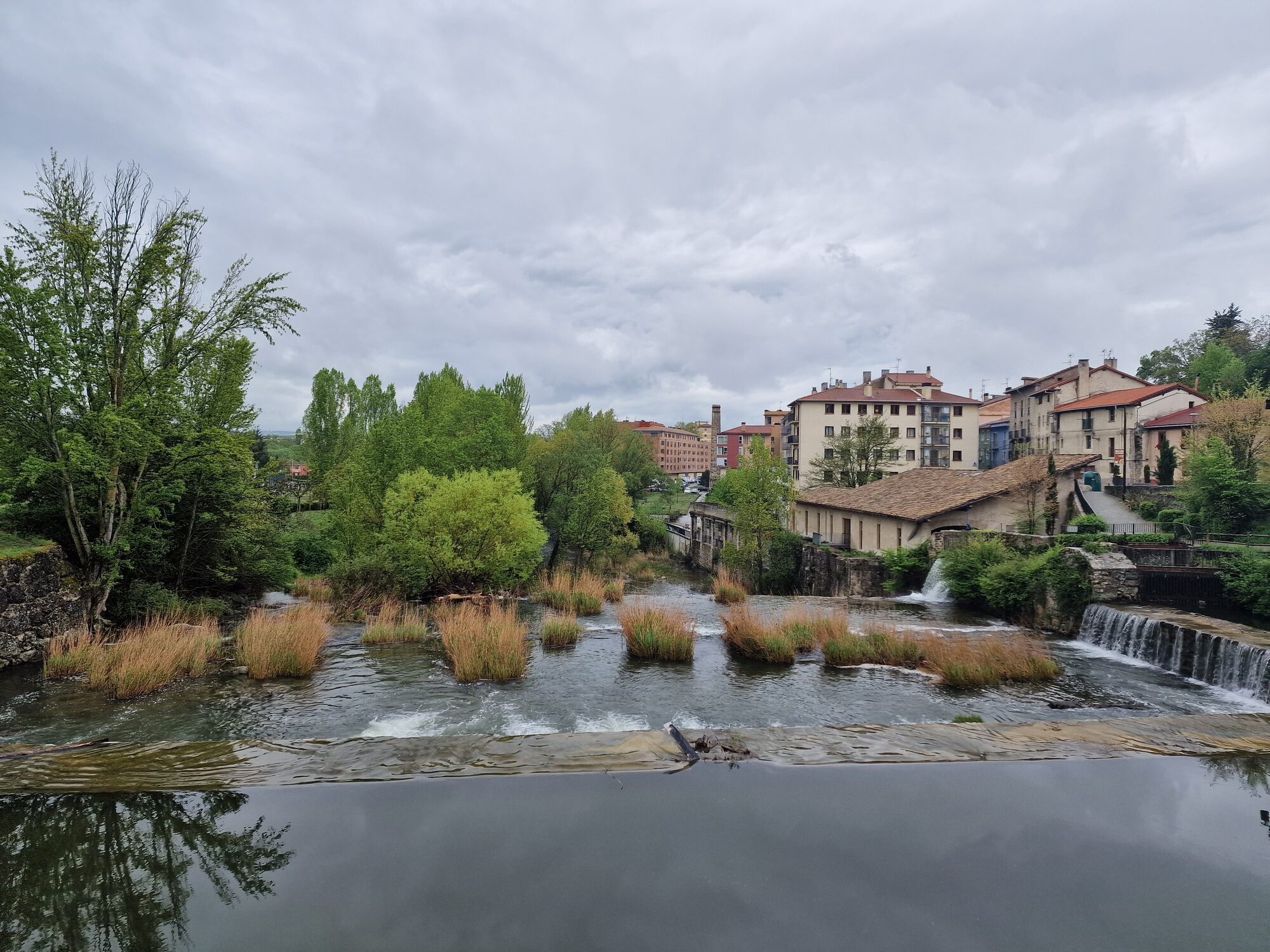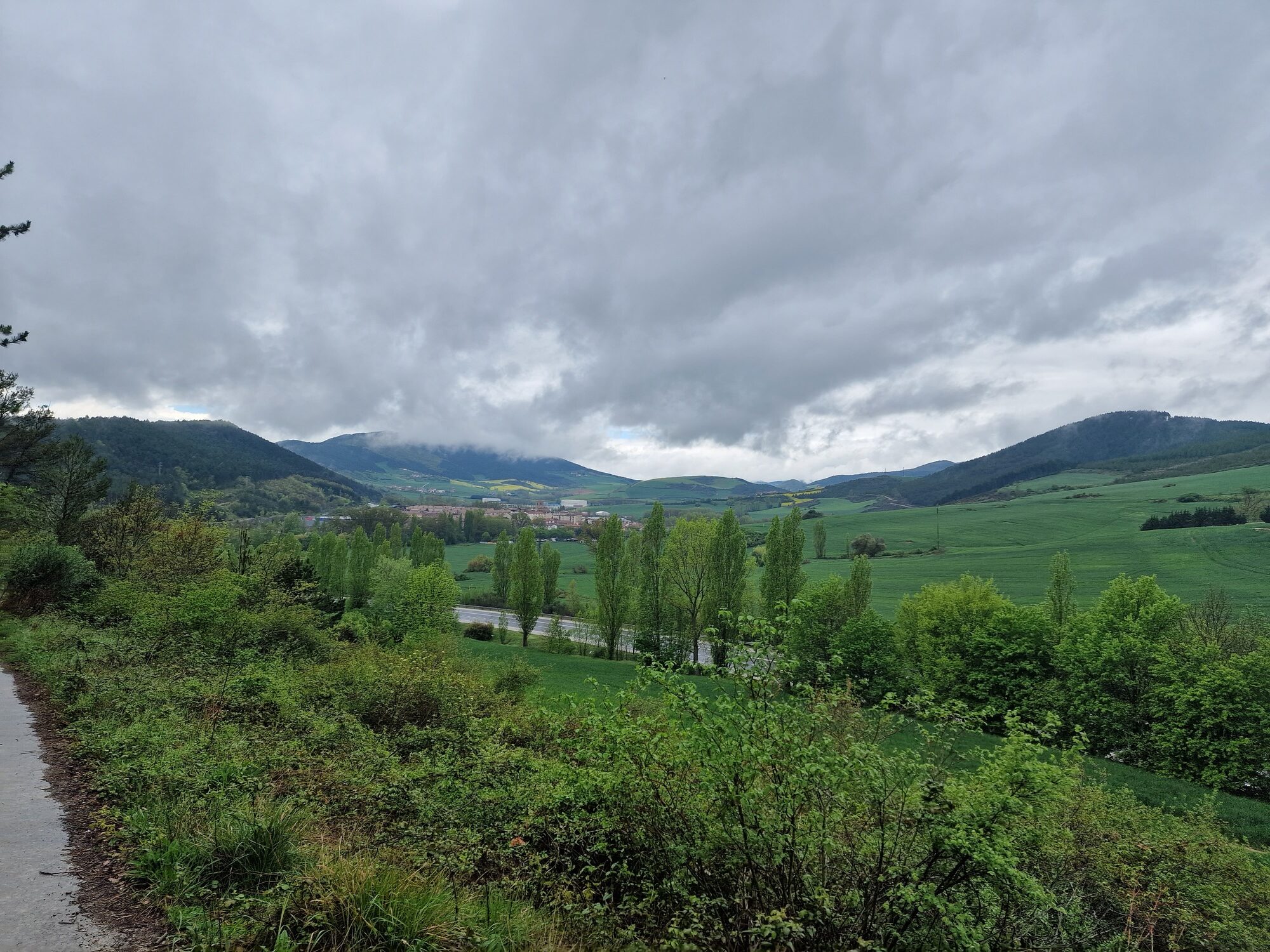 Rain! Today’s hike was my first encounter with rain and it rained most of the way from Zubiri to Pamplona. I made a good place that saw me pass familiar pilgrim faces that set off earlier. I’d skipped breakfast (including the dark lord, coffee). After 10km I stopped at a café filled with pilgrims to drink that missing coffee, then powered on. By the time I got to Pamplona I encountered the Luxemburger from the day before. We spoke a short while then parted ways. I was pretty soaked from the rain.