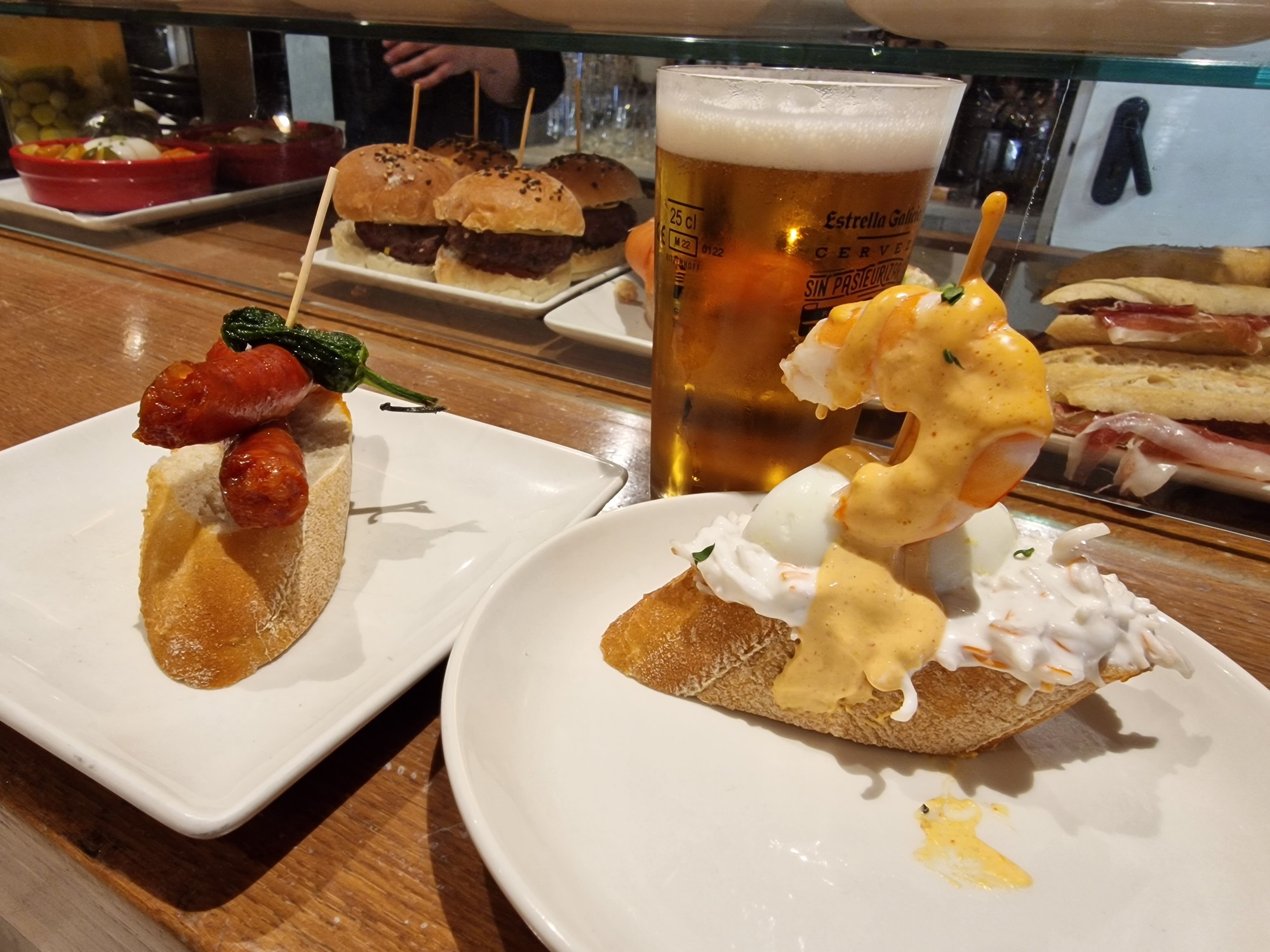 After, I visited a bar for beer, cider and a couple of pintxos, my first food of the day.