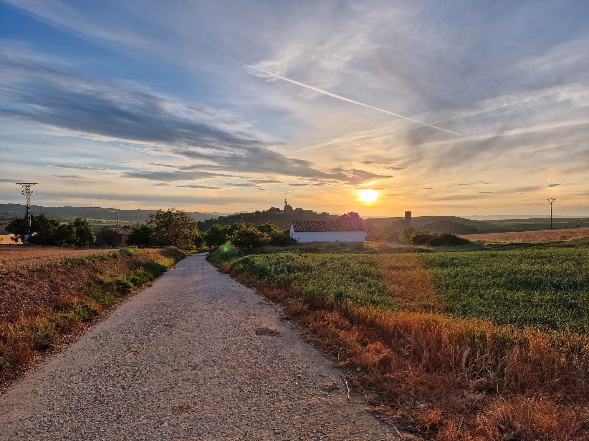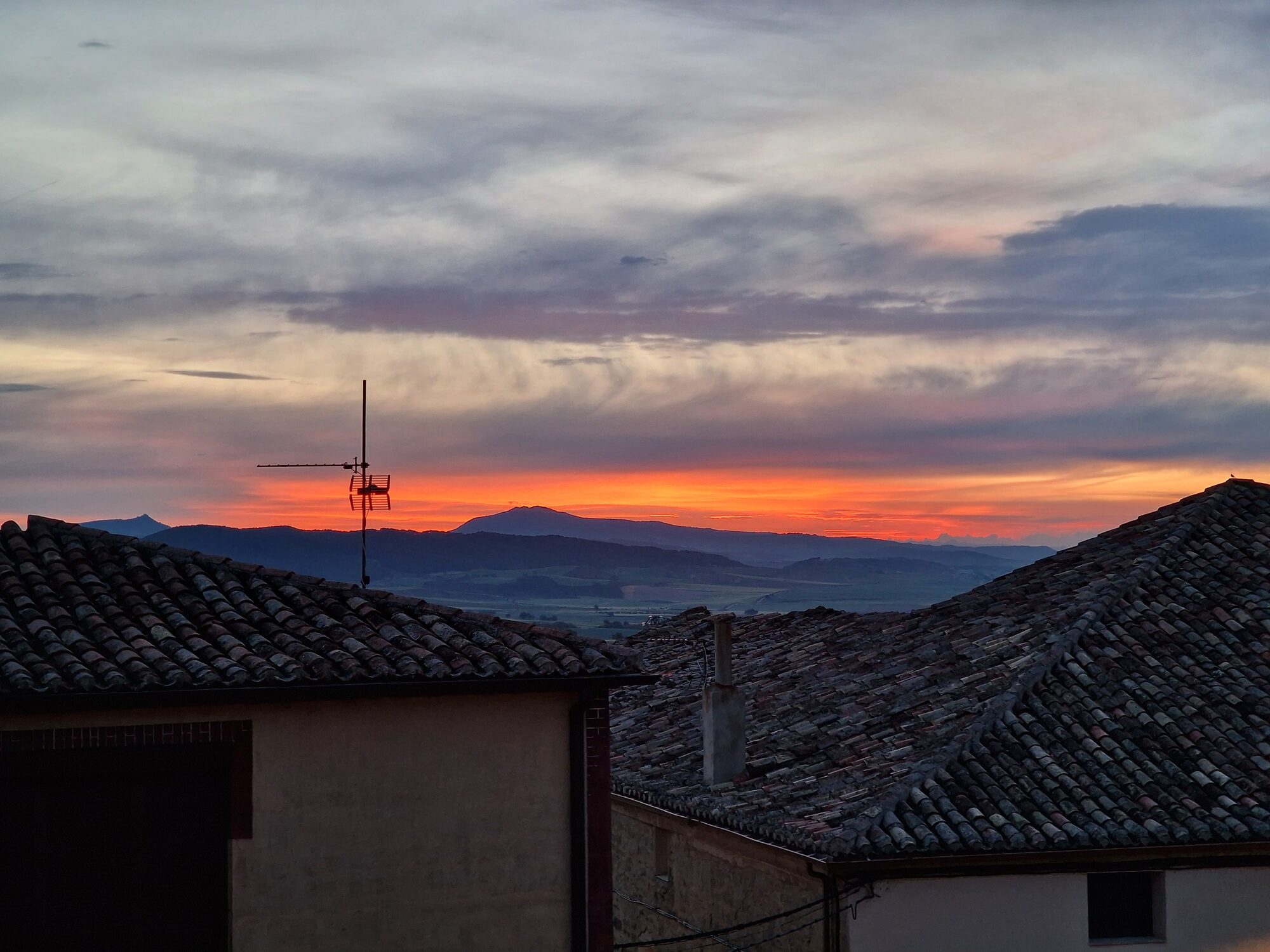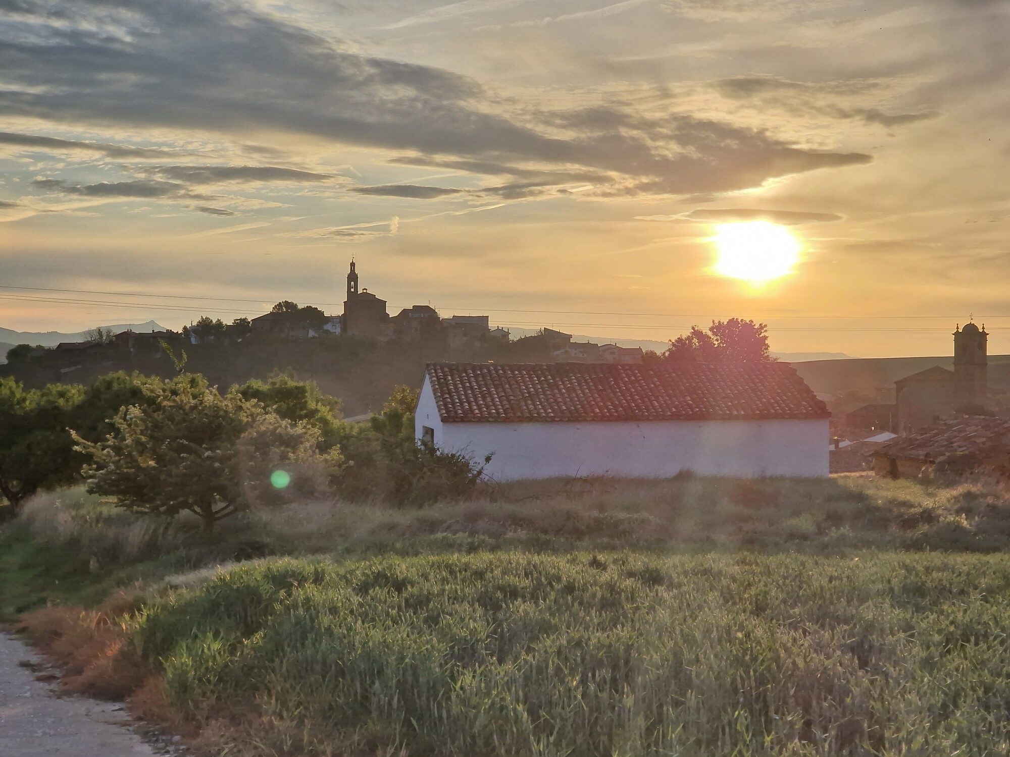 Had dinner last night at the hostel with the other pilgrims. I’ve now stopped for breakfast coffee and tortilla at Viana, an old town halfway to Logroño. This morning’s sunrise was impressive.