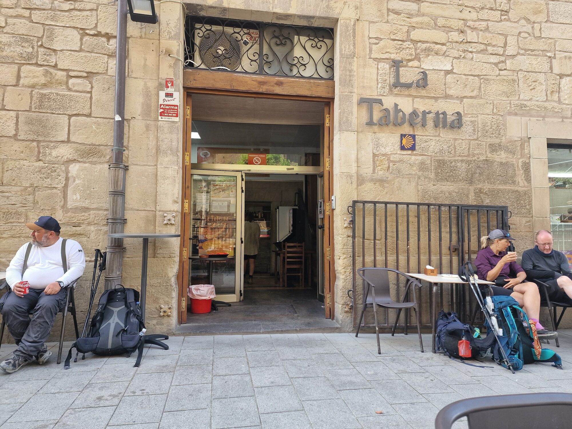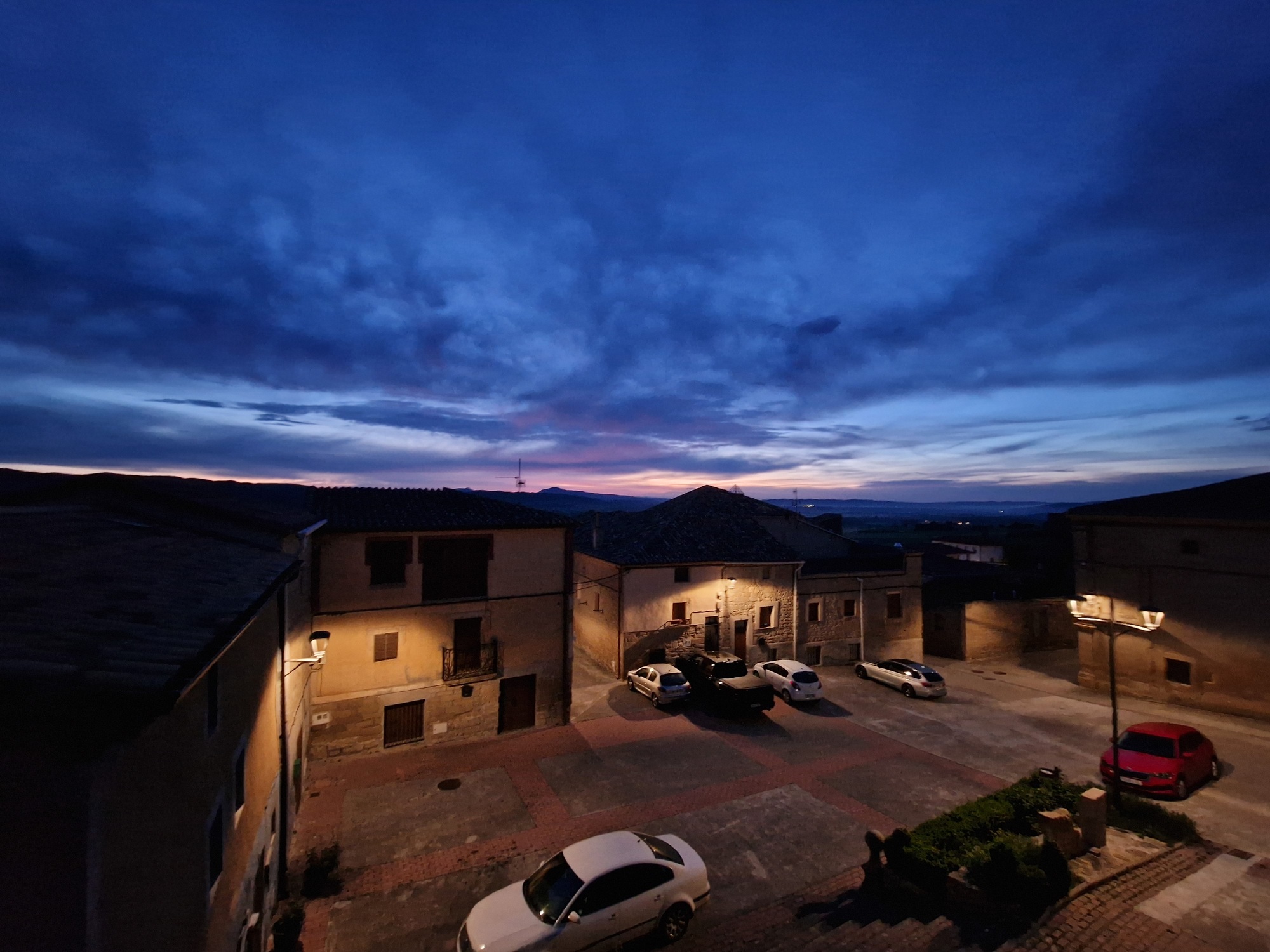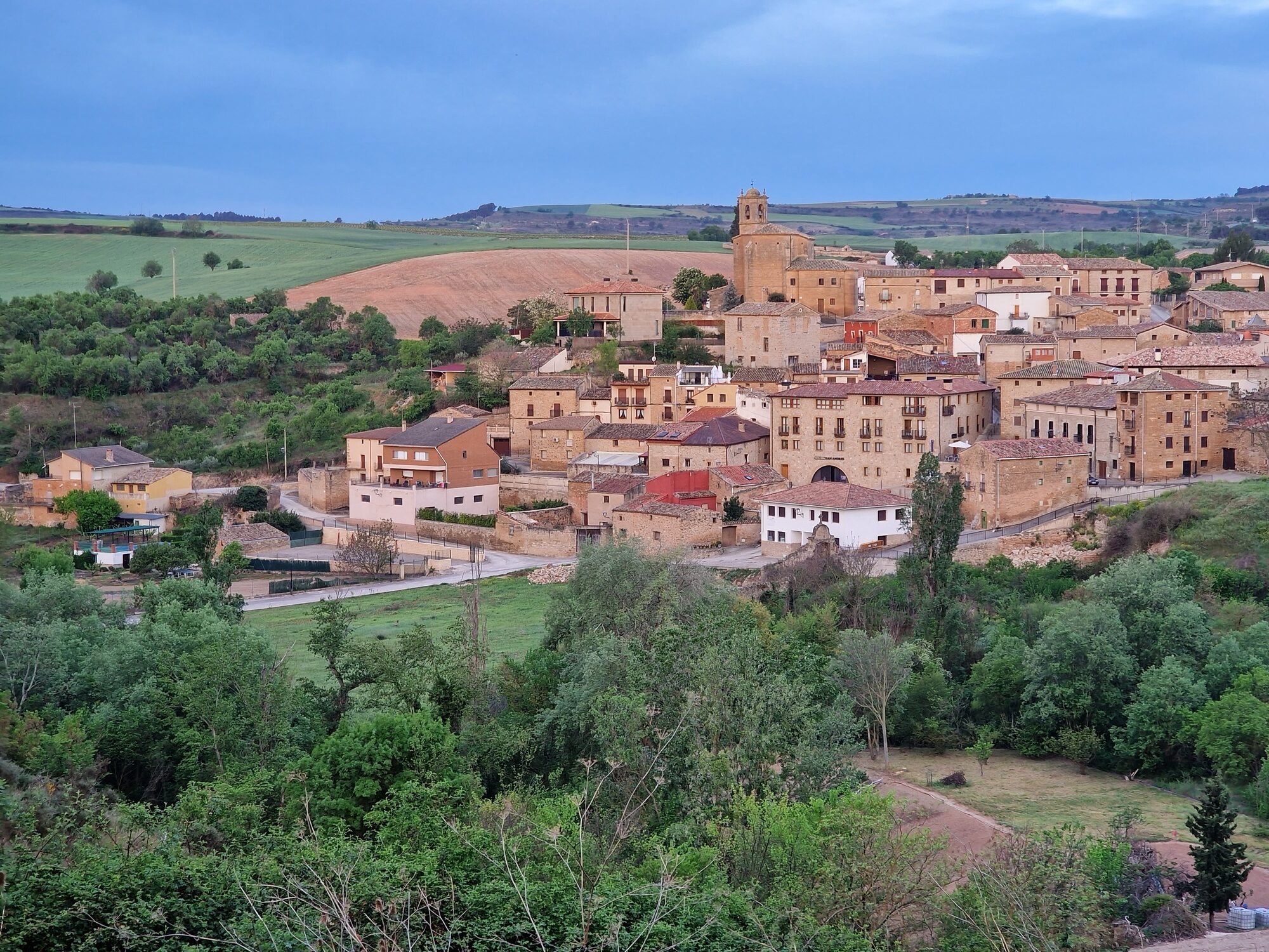 Had dinner last night at the hostel with the other pilgrims. I’ve now stopped for breakfast coffee and tortilla at Viana, an old town halfway to Logroño. This morning’s sunrise was impressive.