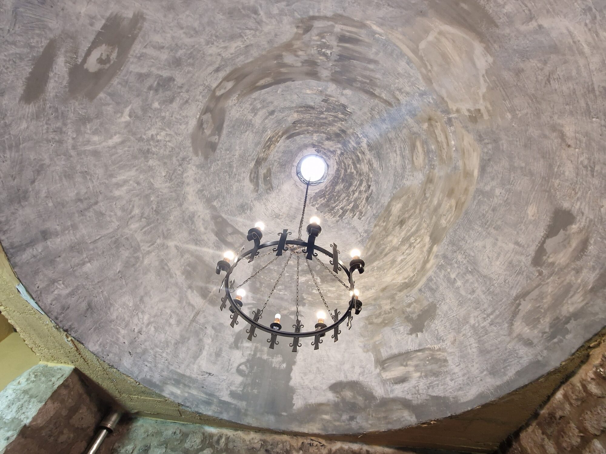 Last night we had a communal dinner made by the host. It was an excellent chicken paella with salad. We sat at a round table with a domed roof. The group of Italians certainly enjoying themselves.