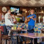 I stopped at a nice guest house where I am staying. Later yesterday evening I had a fancy burger and chips at a nearby restaurant bar. There was an accordion and guitar player when I arrived.