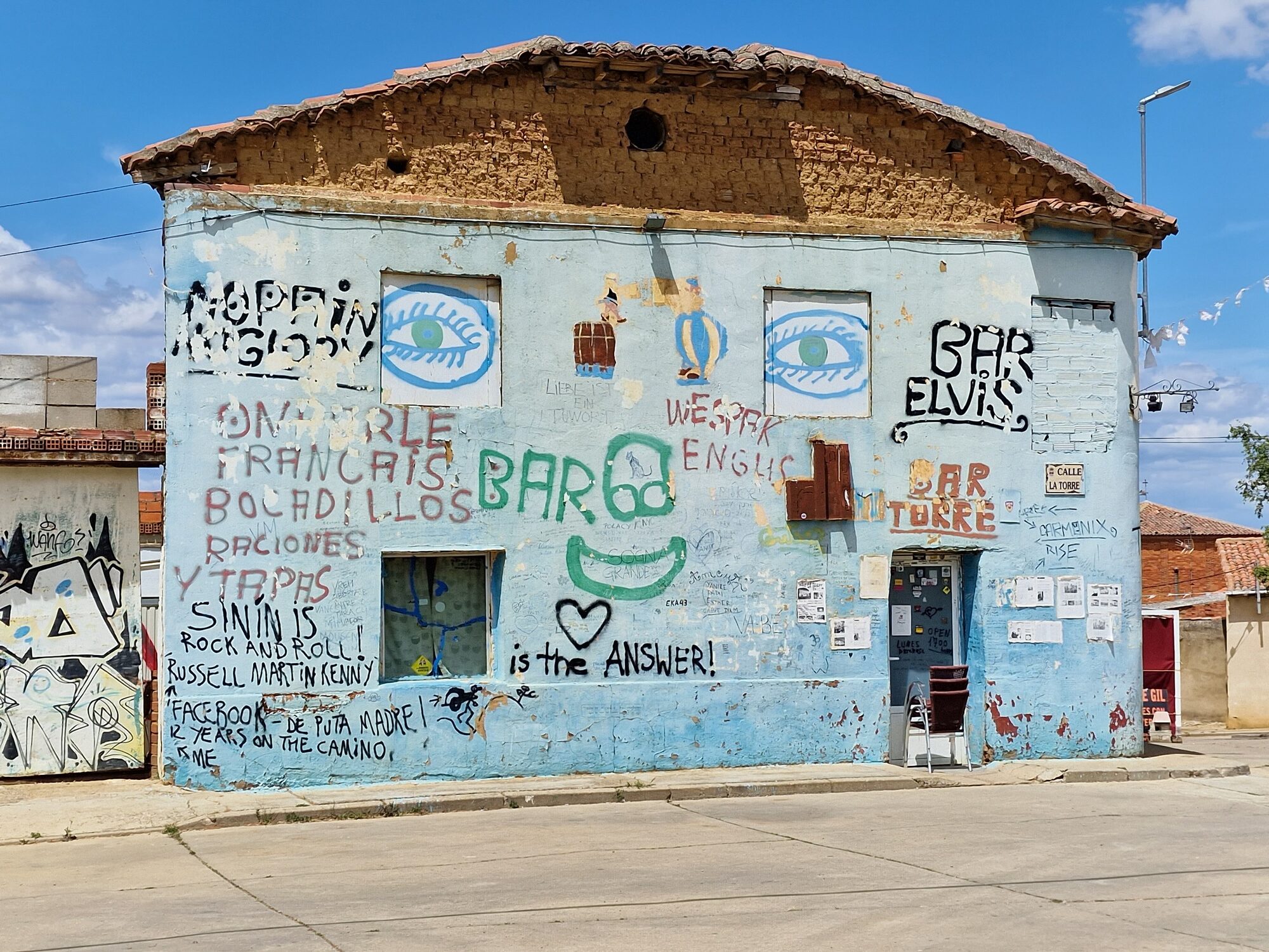 Yesterday I walked just over 29km to Mansilla Mayor, about 1 km off track just after Mansilla de las Mulas. On the way, I stopped for lunch at Reliegos, 8km before. I was eating these massive chicken legs with chips and salad and I had 3 kittens trying to get on my table.