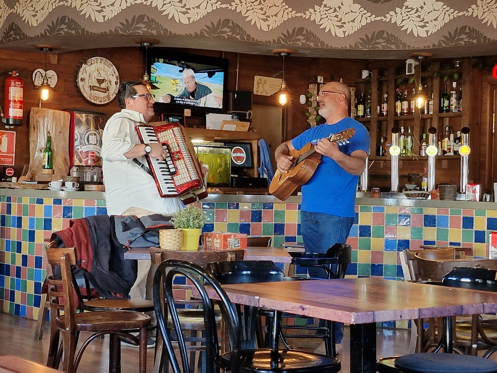 I stopped at a nice guest house where I am staying. Later yesterday evening I had a fancy burger and chips at a nearby restaurant bar. There was an accordion and guitar player when I arrived.
