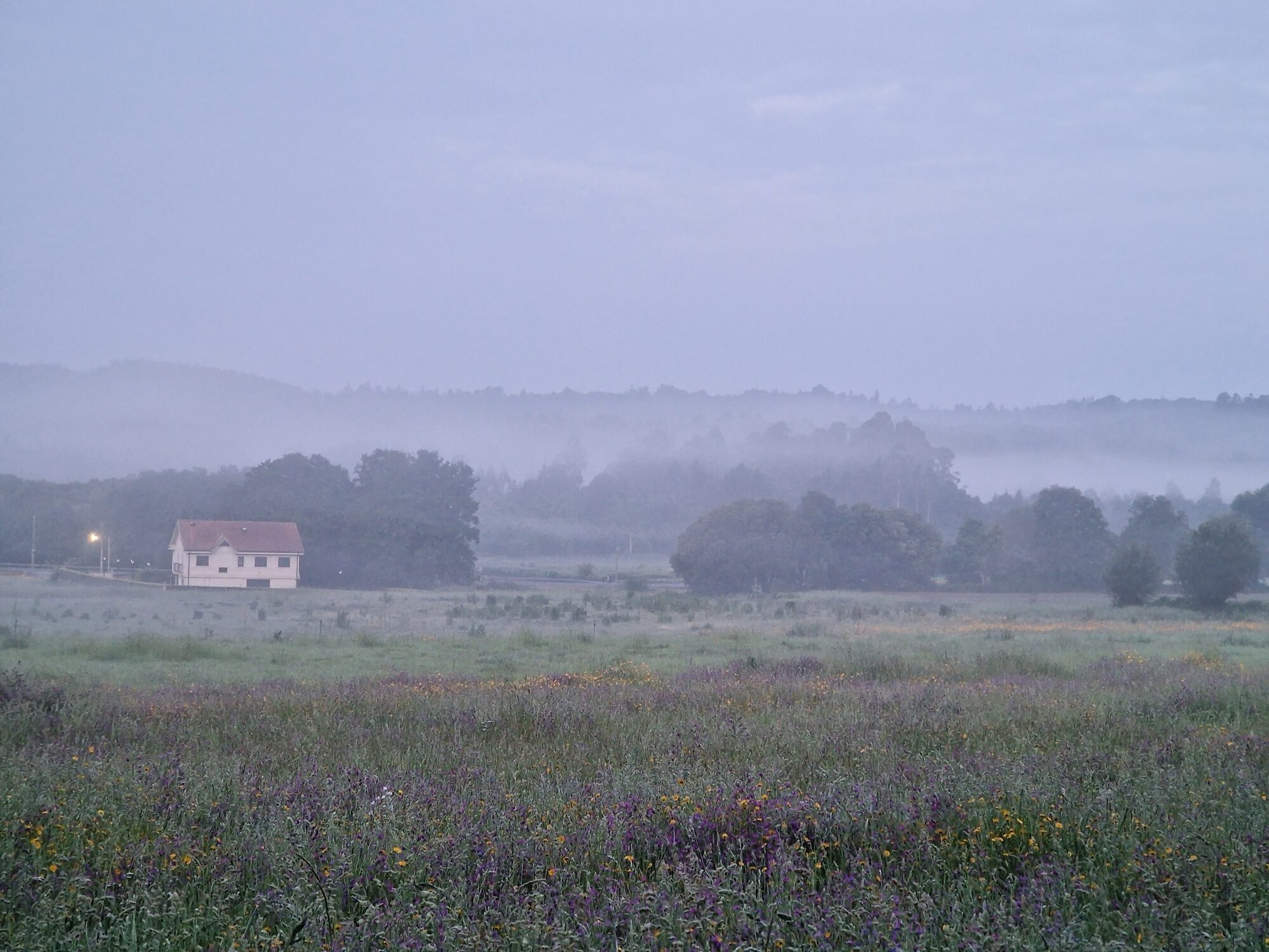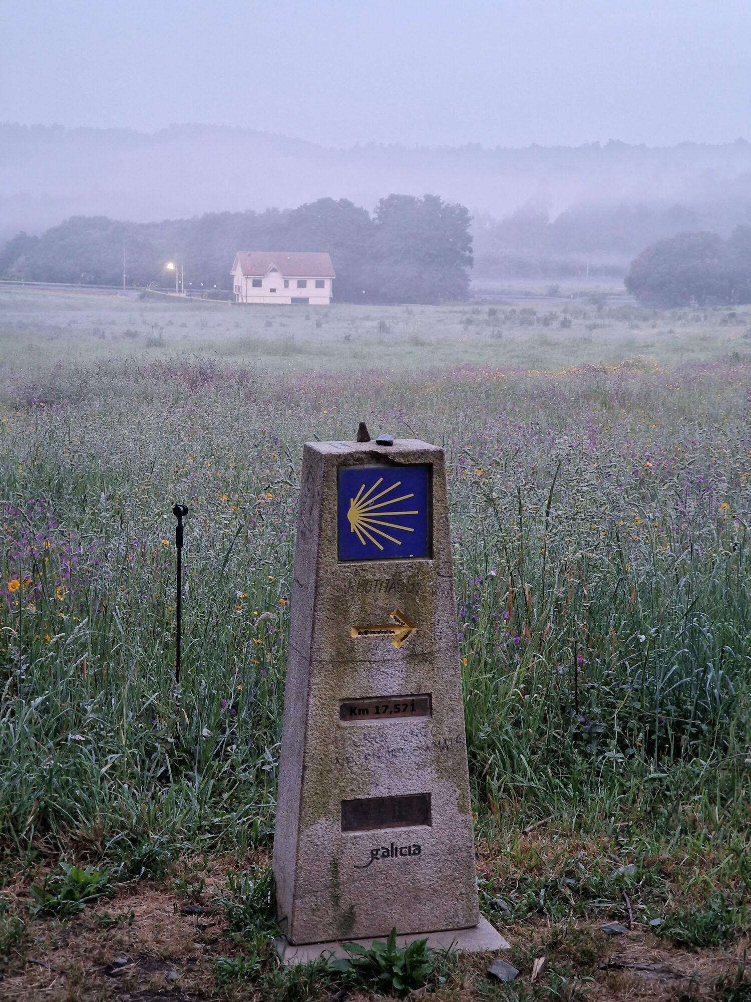 Today was an early start at 6.15am to avoid a long wait at the pilgrim’s office. A mist crept through the fields and valleys for the duration. The route made it’s way around the northern end of the Santiago airport runway then westwards to the city.